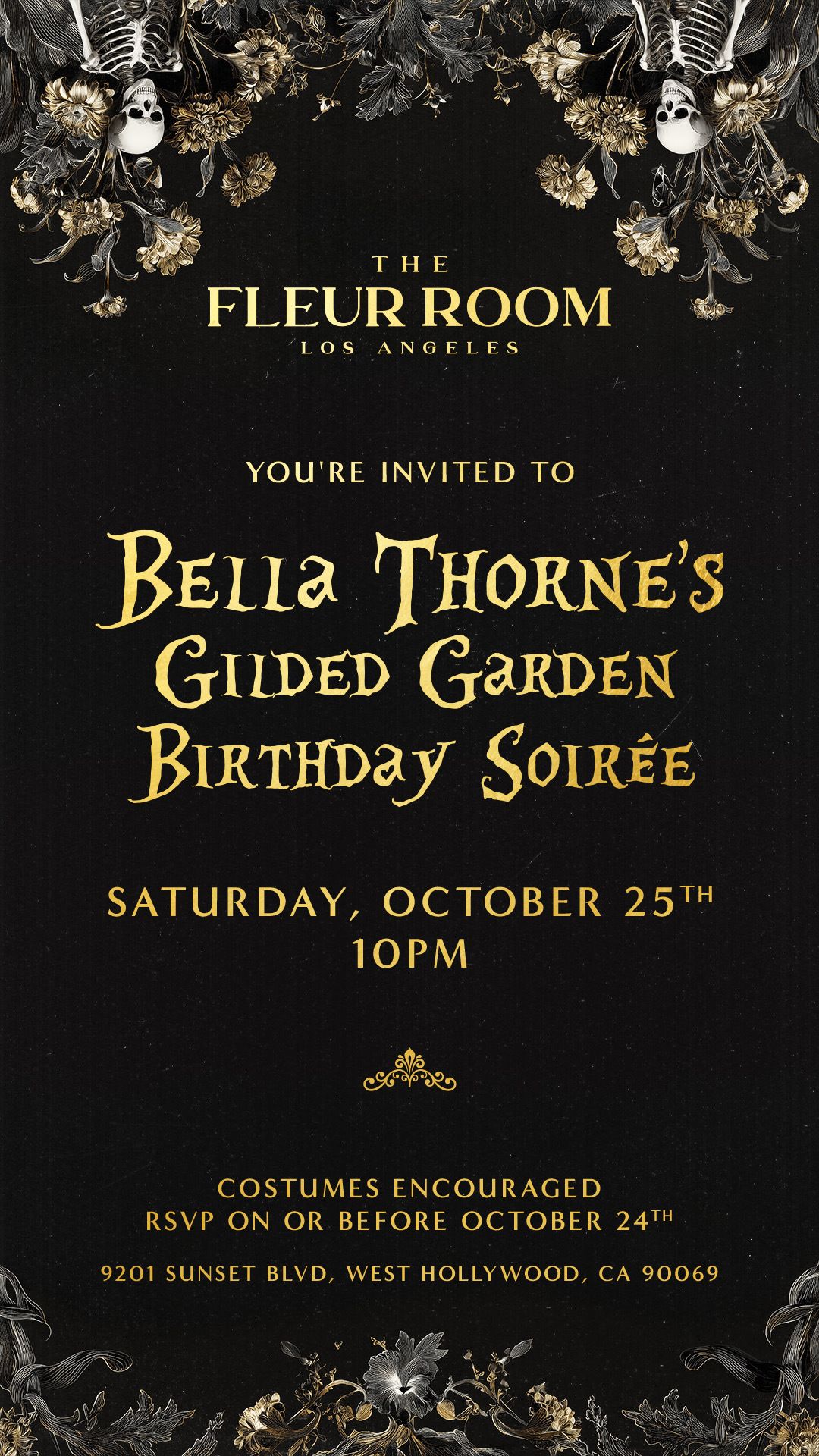 🎃 Bella Thorne’s Gilded Garden Birthday Soirée – The Fleur Room, Saturday, October 25th